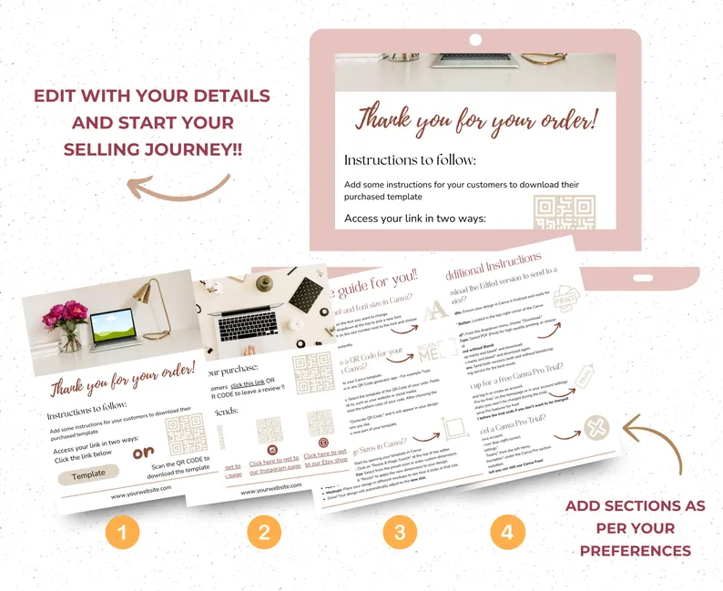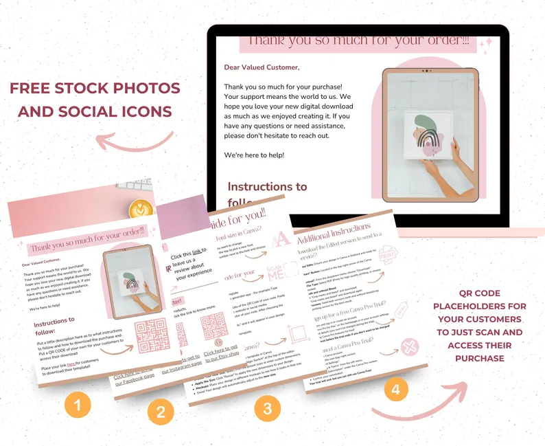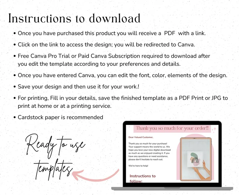 Digital Download Instruction Templates for Digital Products, Template For Digital Product Sellers, Canva instruction pdf thank you template